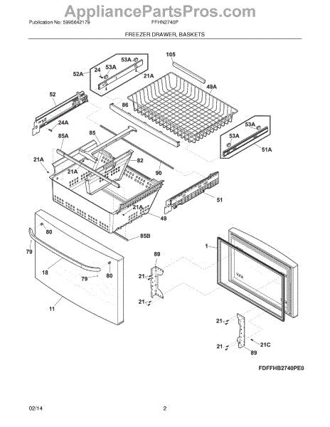 Parts for Frigidaire FFHN2740PP1: 03 - Freezer Drawer, Baskets Parts