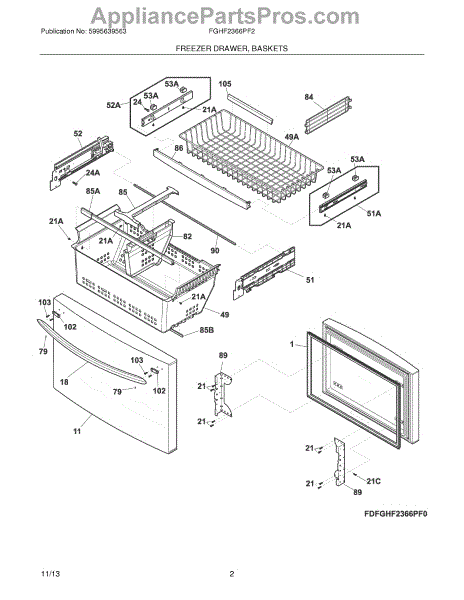 Wire freezer basket installs in the freezer compartment to organize frozen foods. Replace a cracked, broken, or missing basket to restore storage space.