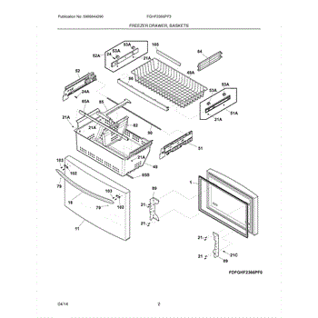 Plastic storage basket that organizes items in the freezer drawer. Replace if cracked, broken, or missing to restore proper food organization.