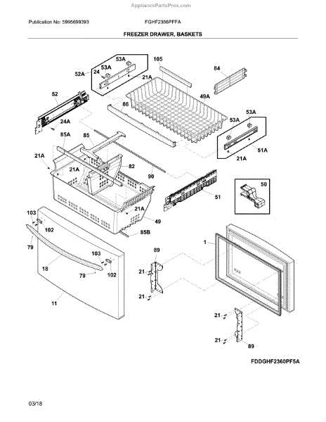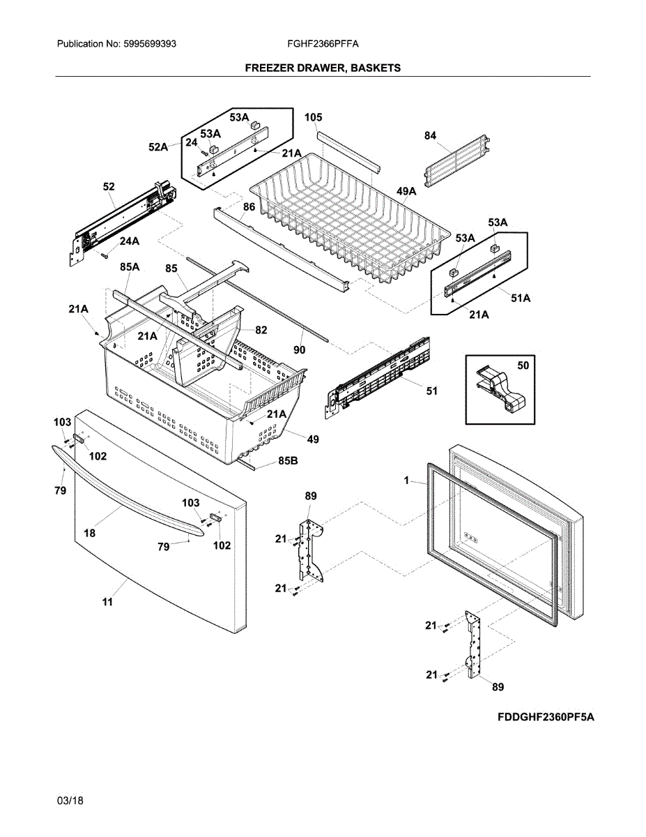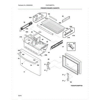 Plastic storage basket that organizes items in the freezer drawer. Replace if cracked, broken, or missing to restore proper food organization.