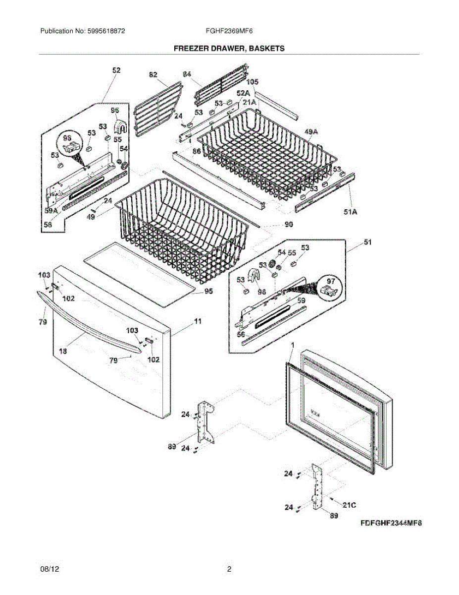 Parts for Frigidaire FGHF2369MF6: 03 - Freezer Drawer, Baskets Parts