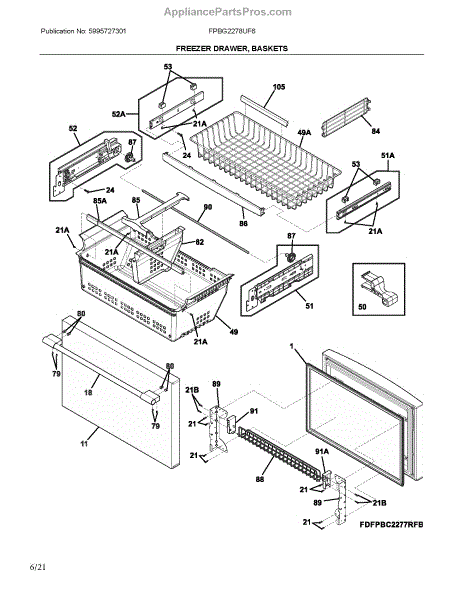 The Slide Assembly is an OEM part specifically designed for Frigidaire refrigerators. It secures crisper and pantry bins within the refrigerator interior, providing gliding functionality for easy access to stored items.