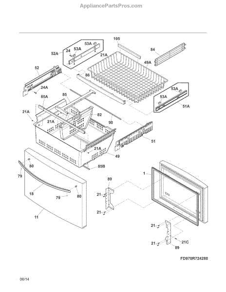 Parts for Kenmore 253.70343210 (25370343210, 253 70343210): Freezer Drawer, Baskets Parts