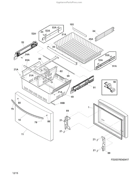 This slide assembly is the replacement drawer slide that guides and supports a refrigerator/freezer drawer for smooth opening and closing. Restores proper drawer alignment and reduces binding or falling drawers. What it does: