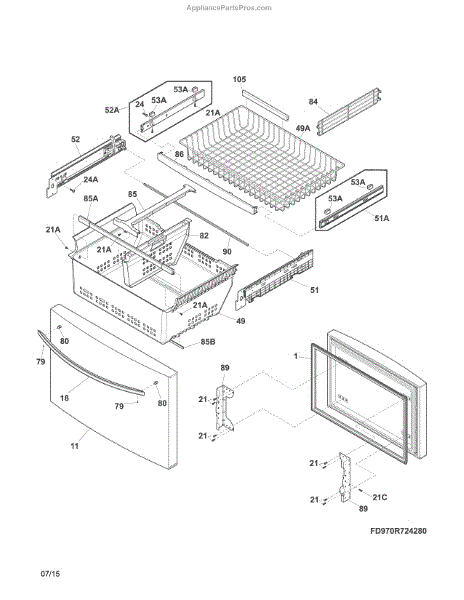 Parts for Kenmore 253.70419413 (25370419413, 253 70419413): Freezer Drawer, Baskets Parts