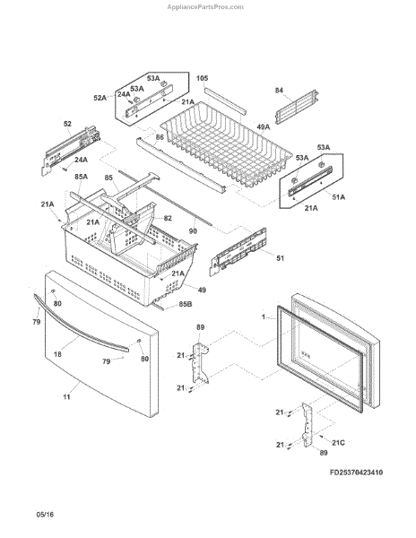 Parts for Kenmore 253.70423416 (25370423416, 253 70423416): Freezer Drawer, Baskets Parts