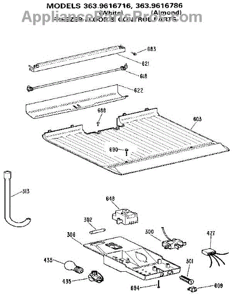 Parts for Kenmore 363.9616716 (3639616716, 363 9616716): Freezer Floor & Control Parts