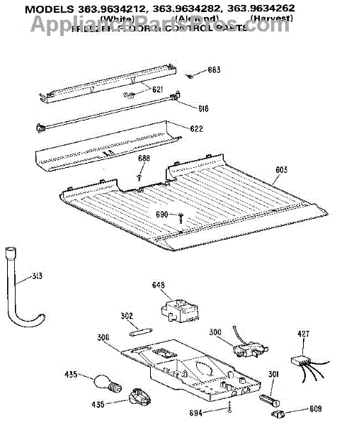 Parts for Kenmore 363.9634282 (3639634282, 363 9634282): Freezer Floor & Control Parts