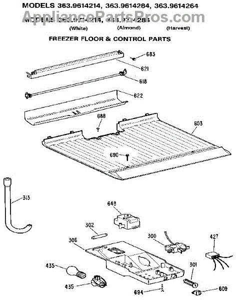 Parts for Kenmore 363.9714214 (3639714214, 363 9714214): Freezer Floor & Control Parts