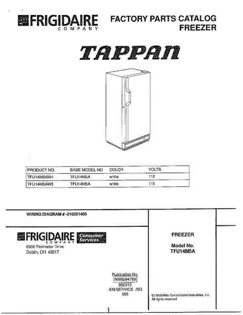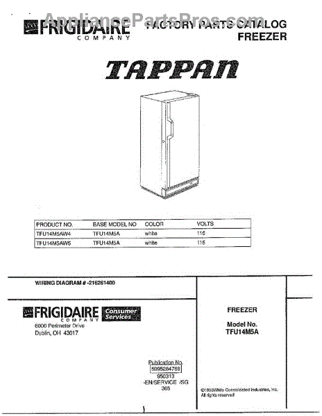 Parts for Frigidaire TFU14M5A: Freezer / Front Cover Parts