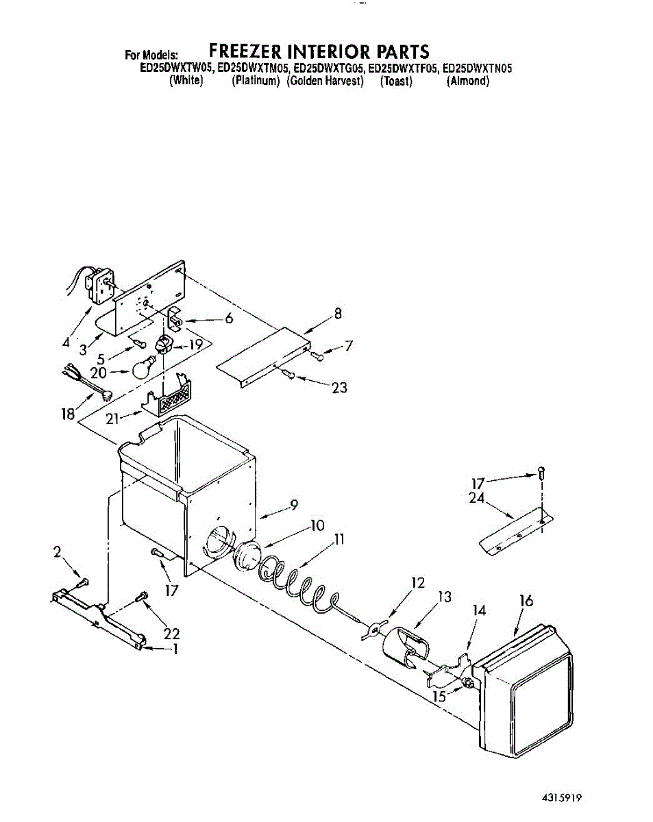 Parts for Whirlpool ED25DWXTG05: 06 - Freezer Interior Parts