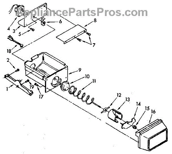 This is the ice container that stores and dispenses ice from the freezer. A clear, intact bin helps ensure reliable ice storage and smooth dispensing without jams or spills.