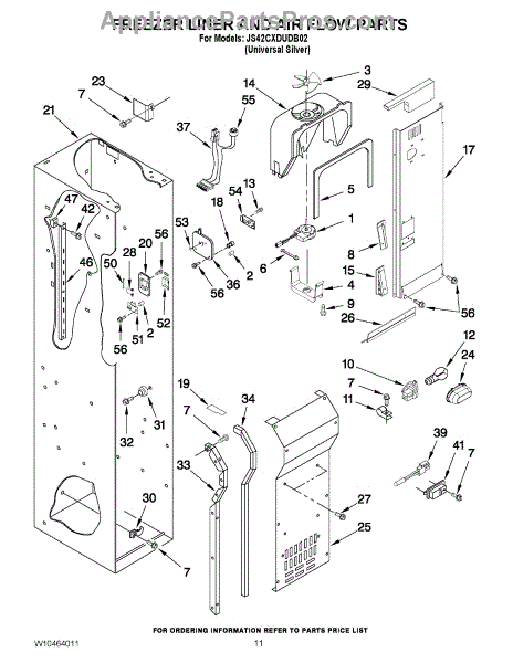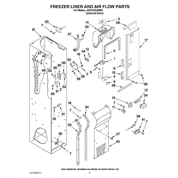 This fan scroll is the plastic housing that surrounds the evaporator fan in the freezer section. It directs air across the evaporator coils and into the ducts, helping your refrigerator move cold air evenly and maintain stable temperatures.