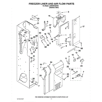 This fan scroll is the plastic housing that surrounds the evaporator fan in the freezer section. It directs air across the evaporator coils and into the ducts, helping your refrigerator move cold air evenly and maintain stable temperatures.