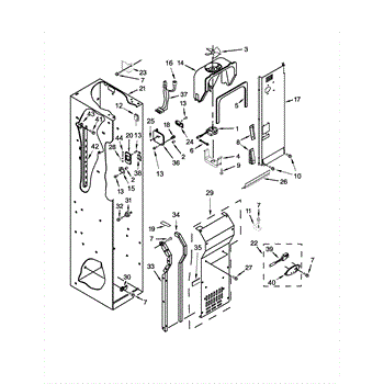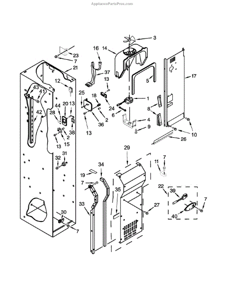 This fan scroll is the plastic housing that surrounds the evaporator fan in the freezer section. It directs air across the evaporator coils and into the ducts, helping your refrigerator move cold air evenly and maintain stable temperatures.