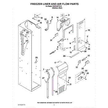 This fan scroll is the plastic housing that surrounds the evaporator fan in the freezer section. It directs air across the evaporator coils and into the ducts, helping your refrigerator move cold air evenly and maintain stable temperatures.