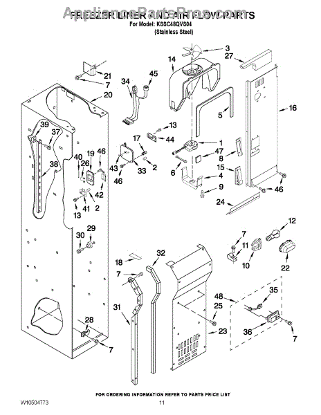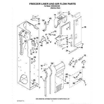 This fan scroll is the plastic housing that surrounds the evaporator fan in the freezer section. It directs air across the evaporator coils and into the ducts, helping your refrigerator move cold air evenly and maintain stable temperatures.