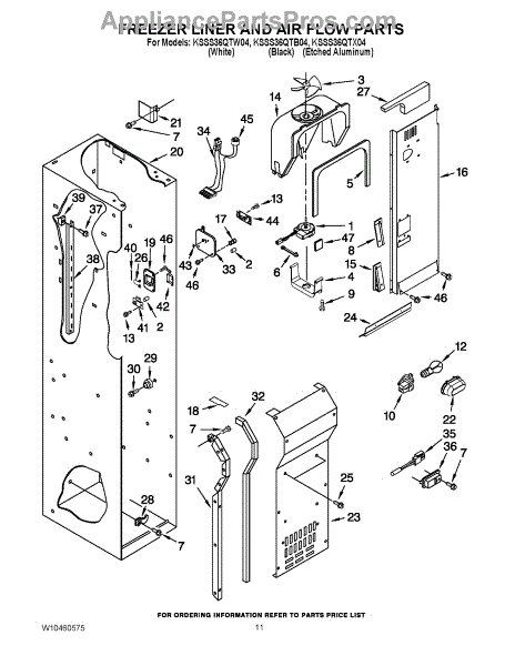 This fan scroll is the molded blower housing that directs airflow from the appliance fan for efficient cooling and ventilation. Replacing a damaged scroll restores proper air path and reduces airflow noise or performance issues. What it does