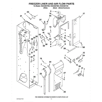 This fan scroll is the plastic housing that surrounds the evaporator fan in the freezer section. It directs air across the evaporator coils and into the ducts, helping your refrigerator move cold air evenly and maintain stable temperatures.