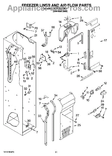 This fan scroll is the plastic housing that surrounds the evaporator fan in the freezer section. It directs air across the evaporator coils and into the ducts, helping your refrigerator move cold air evenly and maintain stable temperatures.