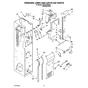 This fan scroll is the plastic housing that surrounds the evaporator fan in the freezer section. It directs air across the evaporator coils and into the ducts, helping your refrigerator move cold air evenly and maintain stable temperatures.