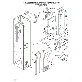 This fan scroll is the molded blower housing that directs airflow from the appliance fan for efficient cooling and ventilation. Replacing a damaged scroll restores proper air path and reduces airflow noise or performance issues. What it does