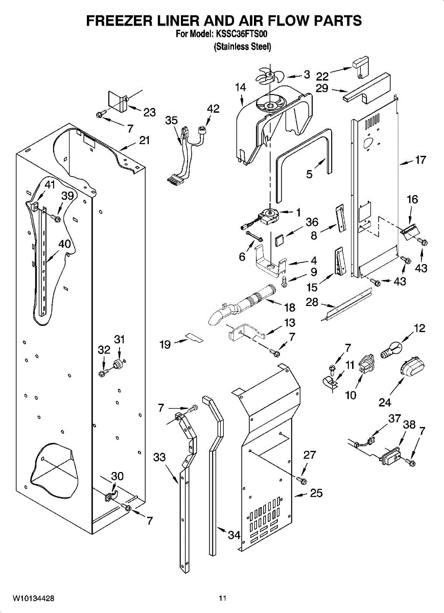 This fan scroll is the molded blower housing that directs airflow from the appliance fan for efficient cooling and ventilation. Replacing a damaged scroll restores proper air path and reduces airflow noise or performance issues. What it does