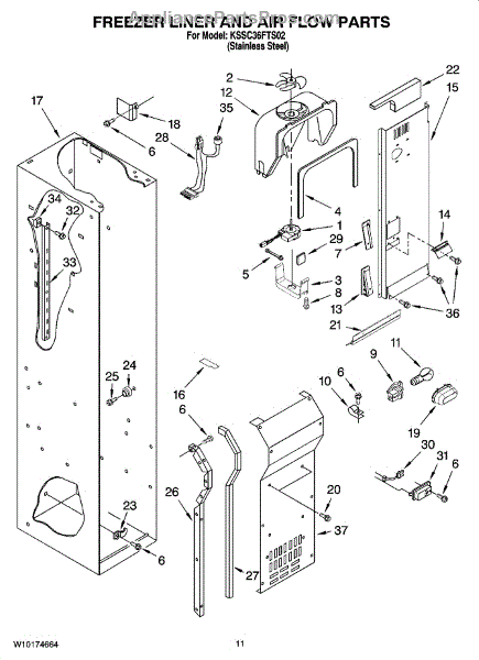This fan scroll is the molded blower housing that directs airflow from the appliance fan for efficient cooling and ventilation. Replacing a damaged scroll restores proper air path and reduces airflow noise or performance issues. What it does