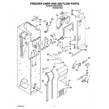 This fan scroll is the molded blower housing that directs airflow from the appliance fan for efficient cooling and ventilation. Replacing a damaged scroll restores proper air path and reduces airflow noise or performance issues. What it does