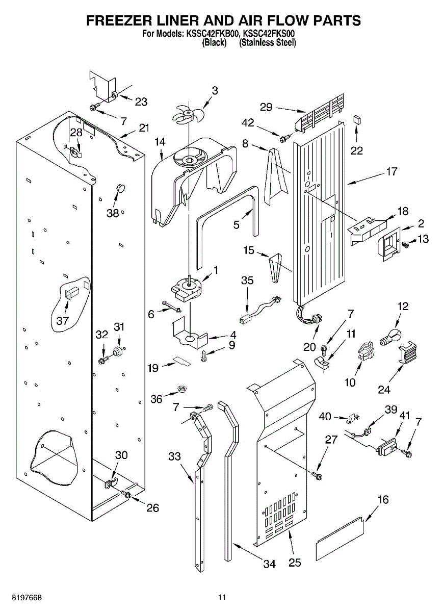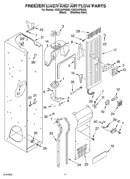 Parts for Kitchenaid KSSC42FKB00: 08 - Freezer Liner And Air Flow Parts