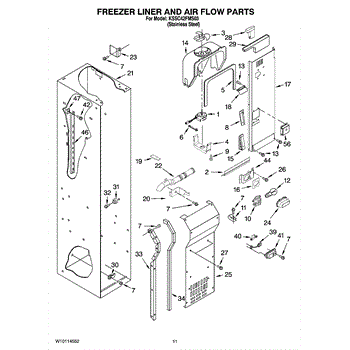 This fan scroll is the plastic housing that surrounds the evaporator fan in the freezer section. It directs air across the evaporator coils and into the ducts, helping your refrigerator move cold air evenly and maintain stable temperatures.