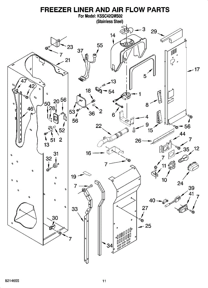 This fan scroll is the plastic housing that surrounds the evaporator fan in the freezer section. It directs air across the evaporator coils and into the ducts, helping your refrigerator move cold air evenly and maintain stable temperatures.