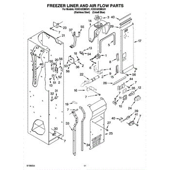 This fan scroll is the plastic housing that surrounds the evaporator fan in the freezer section. It directs air across the evaporator coils and into the ducts, helping your refrigerator move cold air evenly and maintain stable temperatures.