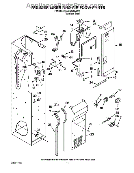 This fan scroll is the plastic housing that surrounds the evaporator fan in the freezer section. It directs air across the evaporator coils and into the ducts, helping your refrigerator move cold air evenly and maintain stable temperatures.
