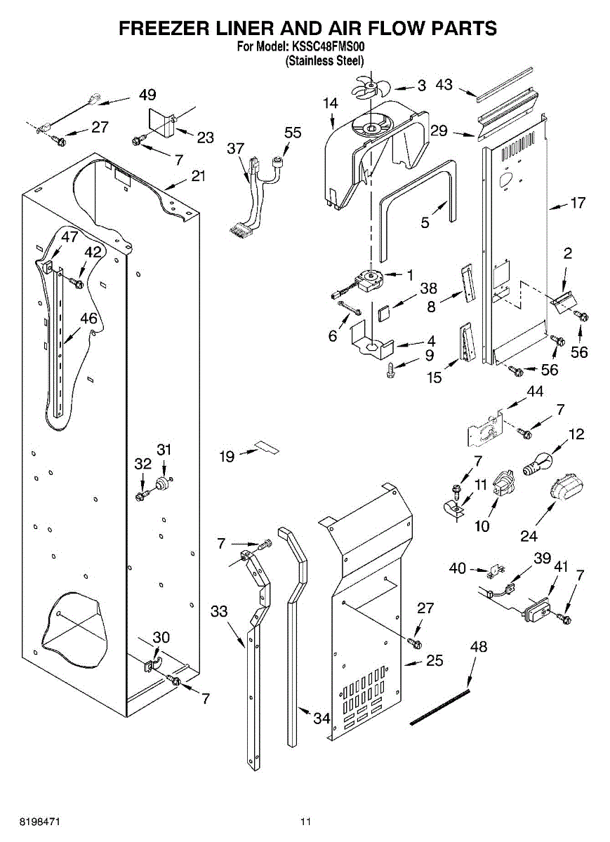 This fan scroll is the plastic housing that surrounds the evaporator fan in the freezer section. It directs air across the evaporator coils and into the ducts, helping your refrigerator move cold air evenly and maintain stable temperatures.