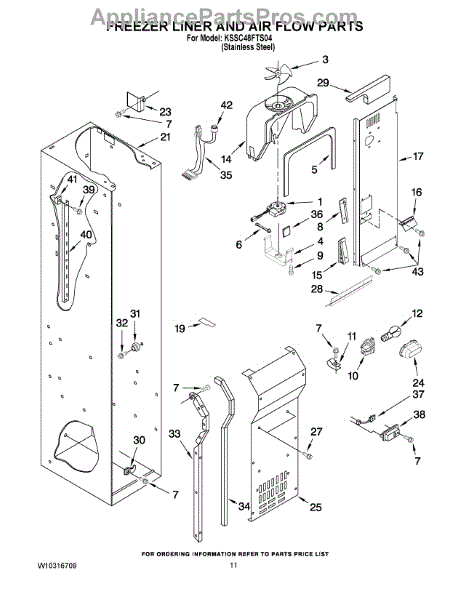 This fan scroll is the plastic housing that surrounds the evaporator fan in the freezer section. It directs air across the evaporator coils and into the ducts, helping your refrigerator move cold air evenly and maintain stable temperatures.