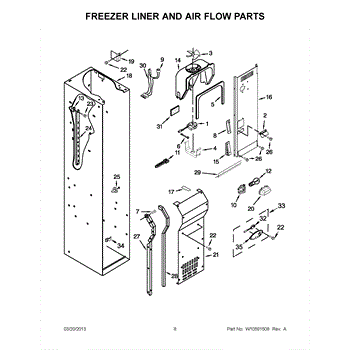 This fan scroll is the plastic housing that surrounds the evaporator fan in the freezer section. It directs air across the evaporator coils and into the ducts, helping your refrigerator move cold air evenly and maintain stable temperatures.