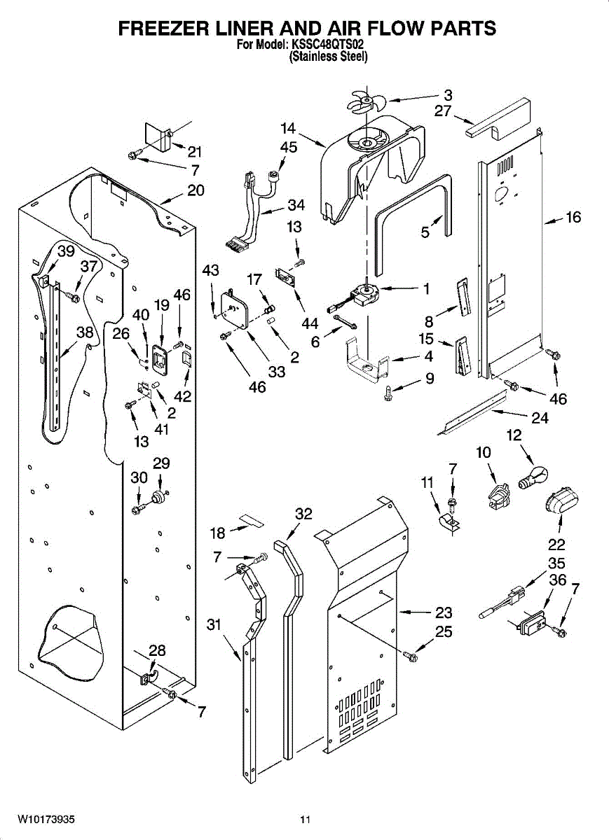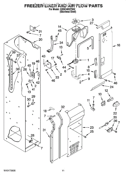 Parts for Kitchenaid KSSC48QTS02: 08 - Freezer Liner And Air Flow Parts