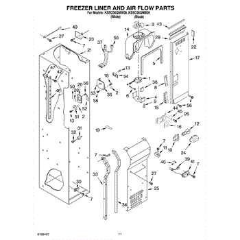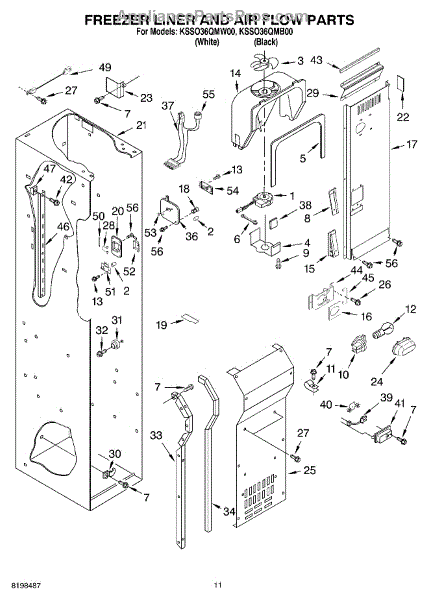 This fan scroll is the molded blower housing that directs airflow from the appliance fan for efficient cooling and ventilation. Replacing a damaged scroll restores proper air path and reduces airflow noise or performance issues. What it does