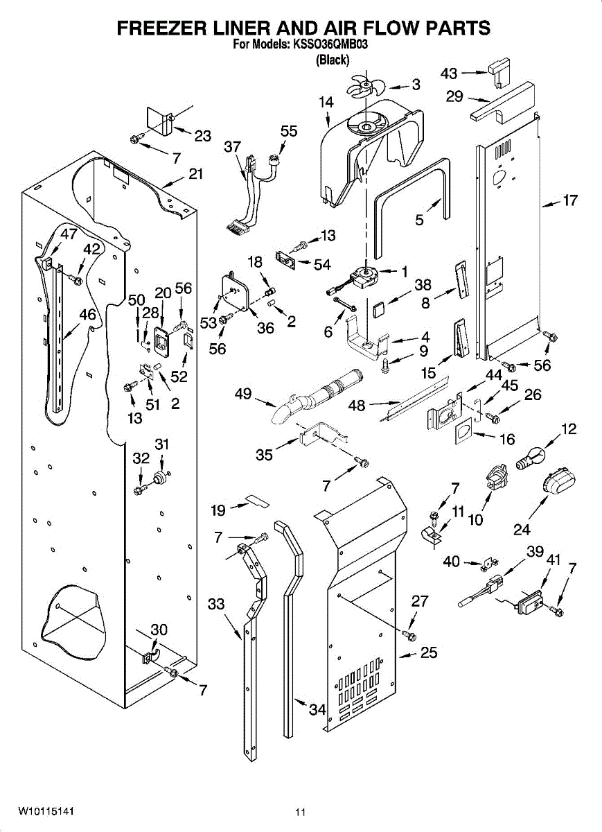 Parts for Kitchenaid KSSO36QMB03: 08 - Freezer Liner And Air Flow Parts