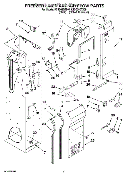 This fan scroll is the molded blower housing that directs airflow from the appliance fan for efficient cooling and ventilation. Replacing a damaged scroll restores proper air path and reduces airflow noise or performance issues. What it does