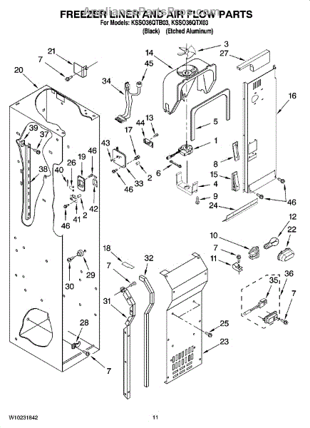 Parts for Kitchenaid KSSO36QTB03: 08 - Freezer Liner And Air Flow Parts