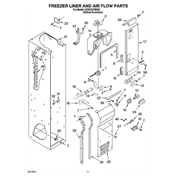 This fan scroll is the plastic housing that surrounds the evaporator fan in the freezer section. It directs air across the evaporator coils and into the ducts, helping your refrigerator move cold air evenly and maintain stable temperatures.