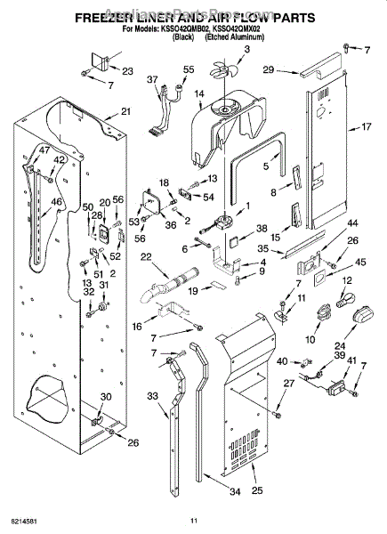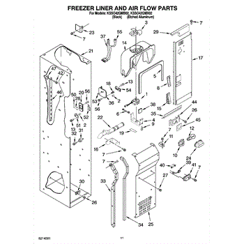 This fan scroll is the plastic housing that surrounds the evaporator fan in the freezer section. It directs air across the evaporator coils and into the ducts, helping your refrigerator move cold air evenly and maintain stable temperatures.