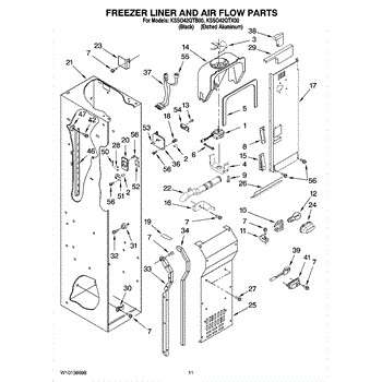 This fan scroll is the plastic housing that surrounds the evaporator fan in the freezer section. It directs air across the evaporator coils and into the ducts, helping your refrigerator move cold air evenly and maintain stable temperatures.
