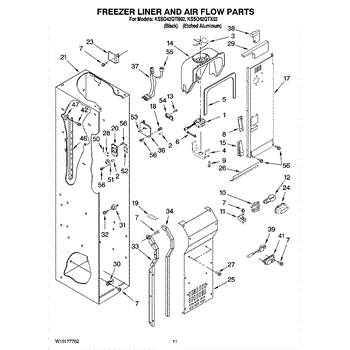 This fan scroll is the plastic housing that surrounds the evaporator fan in the freezer section. It directs air across the evaporator coils and into the ducts, helping your refrigerator move cold air evenly and maintain stable temperatures.