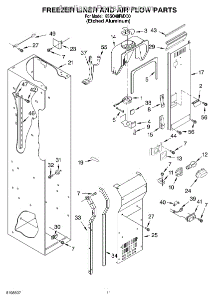 This fan scroll is the plastic housing that surrounds the evaporator fan in the freezer section. It directs air across the evaporator coils and into the ducts, helping your refrigerator move cold air evenly and maintain stable temperatures.