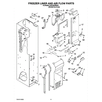This fan scroll is the plastic housing that surrounds the evaporator fan in the freezer section. It directs air across the evaporator coils and into the ducts, helping your refrigerator move cold air evenly and maintain stable temperatures.