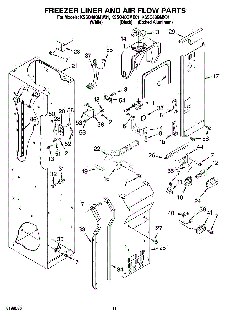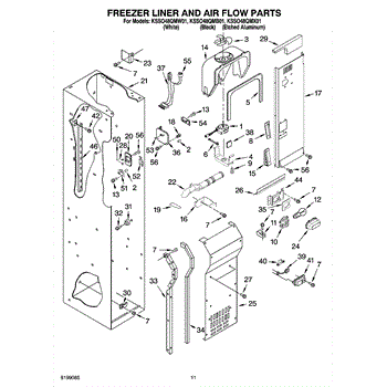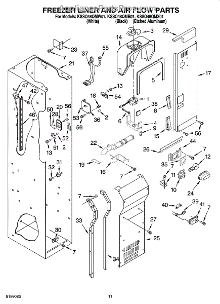 This fan scroll is the plastic housing that surrounds the evaporator fan in the freezer section. It directs air across the evaporator coils and into the ducts, helping your refrigerator move cold air evenly and maintain stable temperatures.