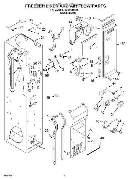 Parts for Kitchenaid KSSP42QMS00: 08 - Freezer Liner And Air Flow Parts